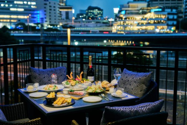開放感あるウォーターフロントのテラスで華やかなディナーを